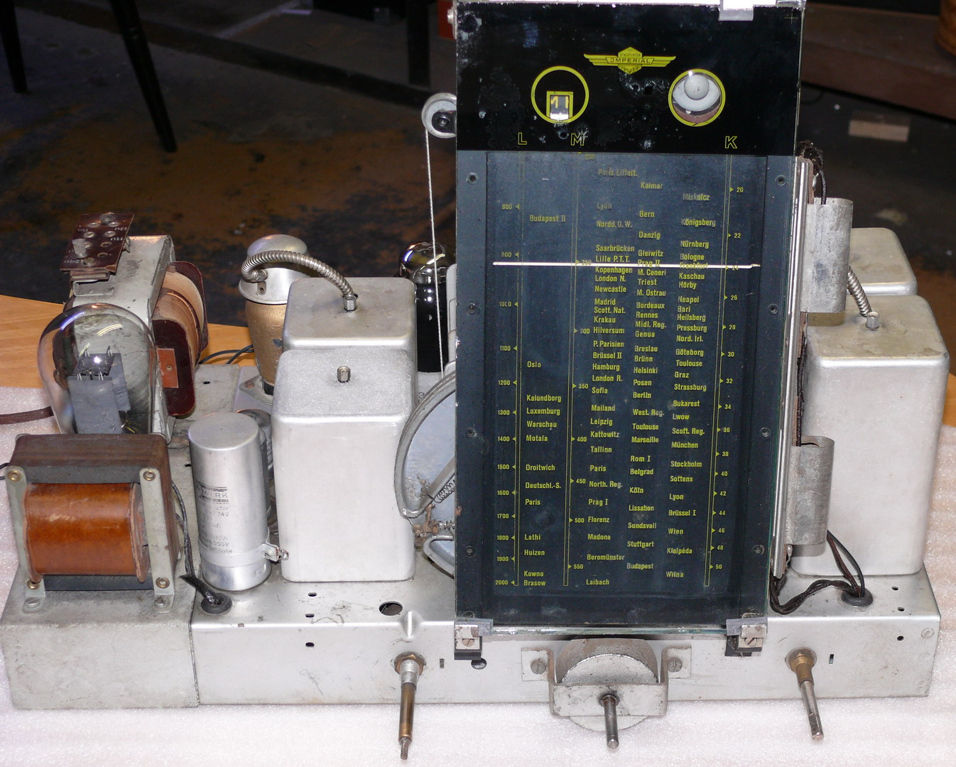 Ein Sammler übergab mir diesen gut erhaltenen Staßfurt Imperial 98W zur Reparatur. Diesem Vertrauensbeweis konnte ich nicht widerstehen. Gehört dieses Gerät doch schon zu den selteneren Exemplaren seiner Art. Baujahr 1938. Chassis und Verdrahtung waren weitestgehend unberührt. Das Gerät ist gut ausgestattet. Dazu zähle ich: